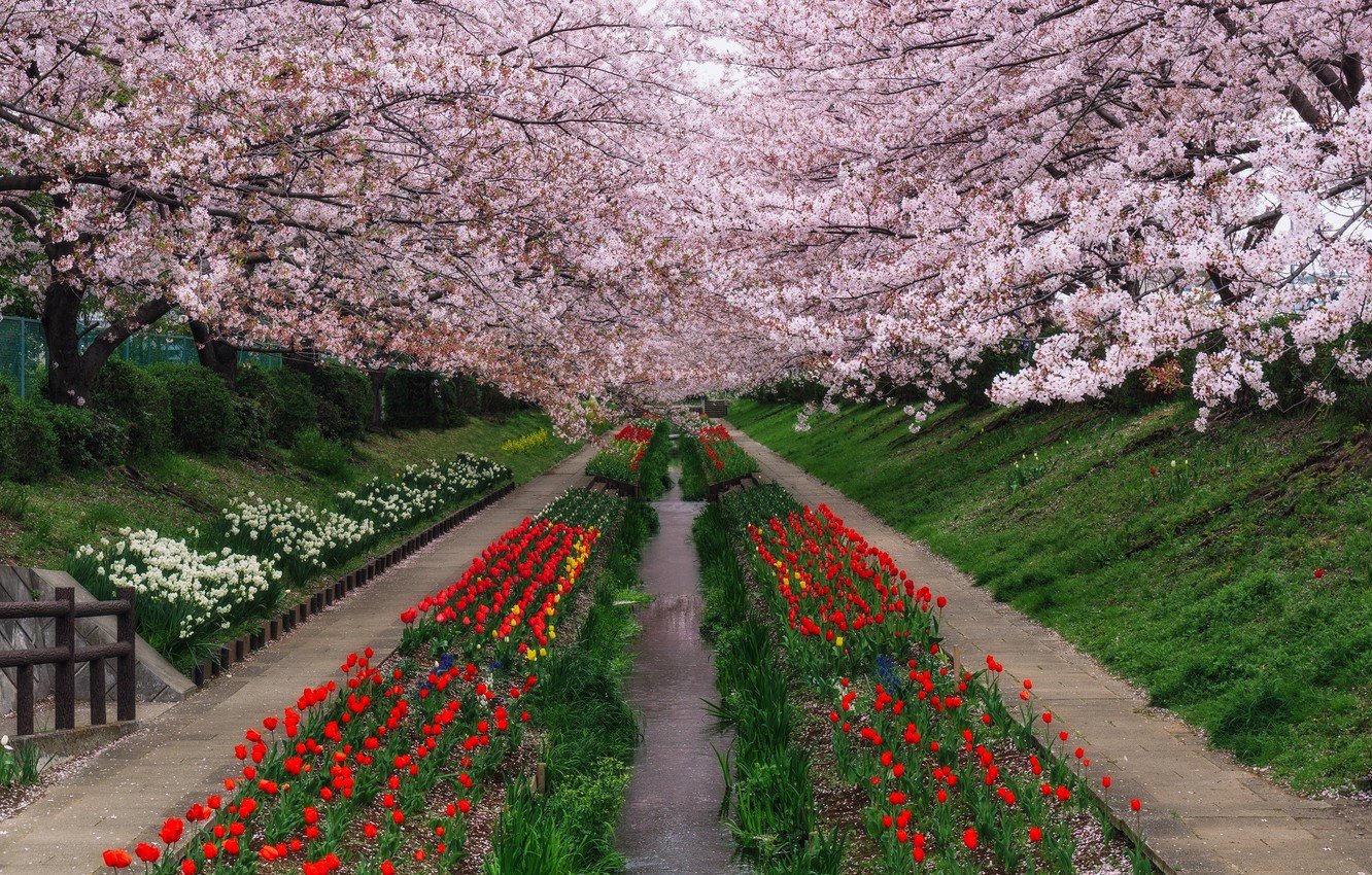 ![Аллея Сакуры в Японии цветение]()