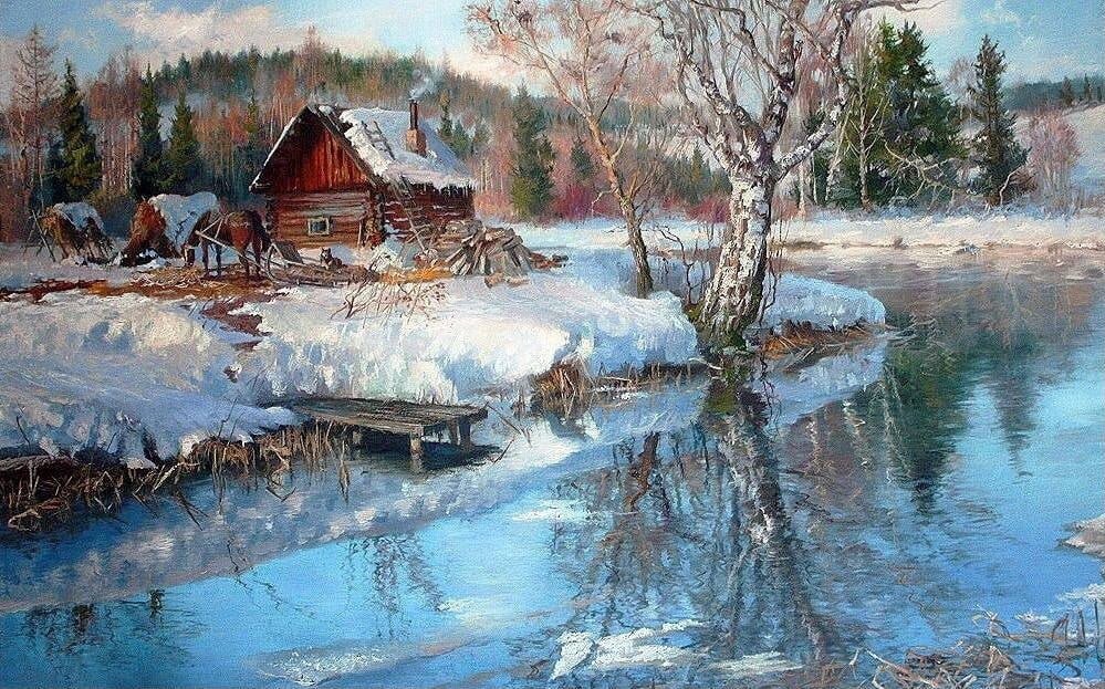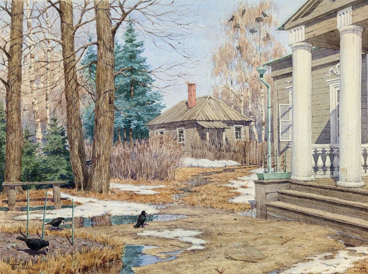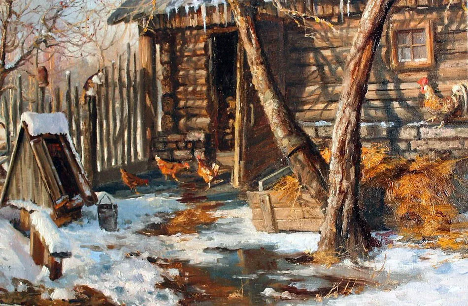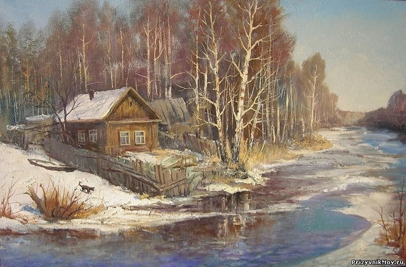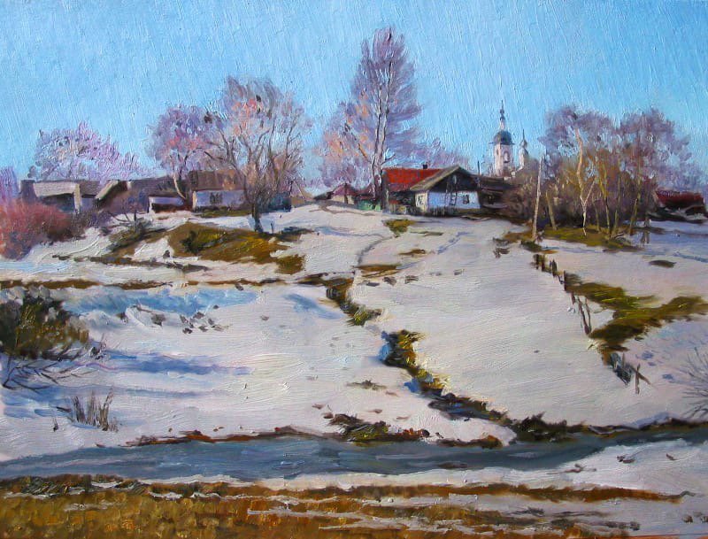 ![Живопись ранняя Весна в деревне]()