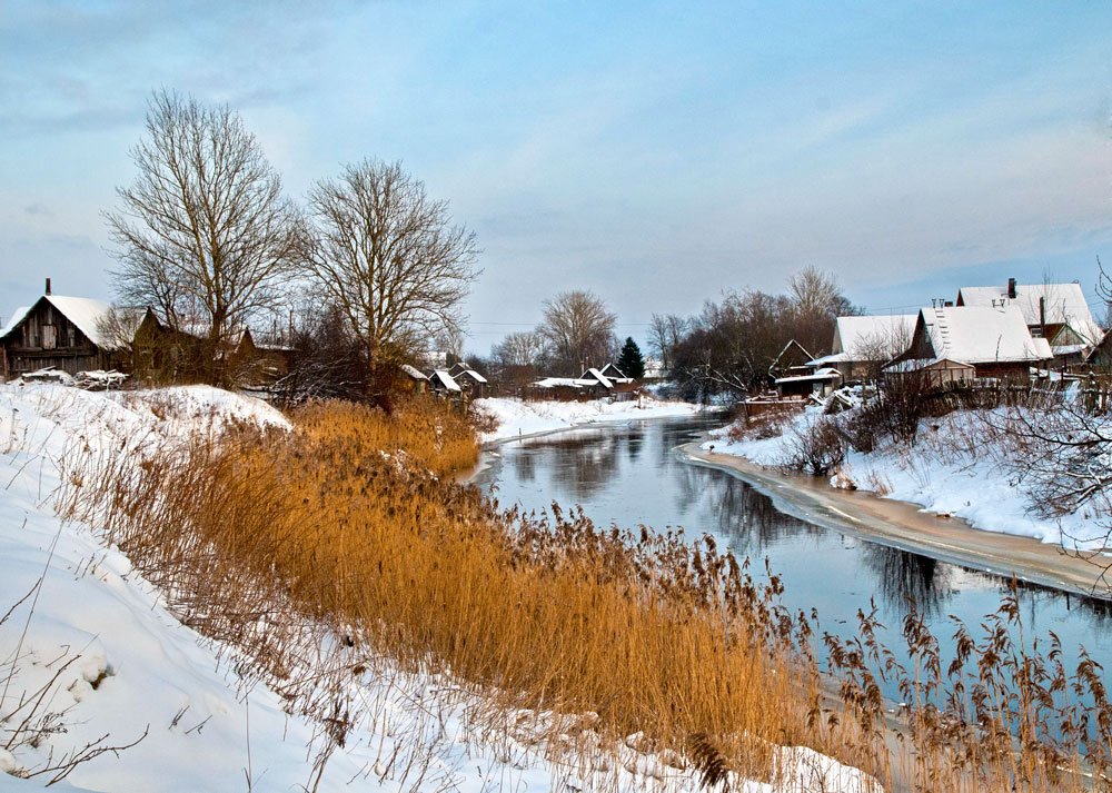 Зима деревня река