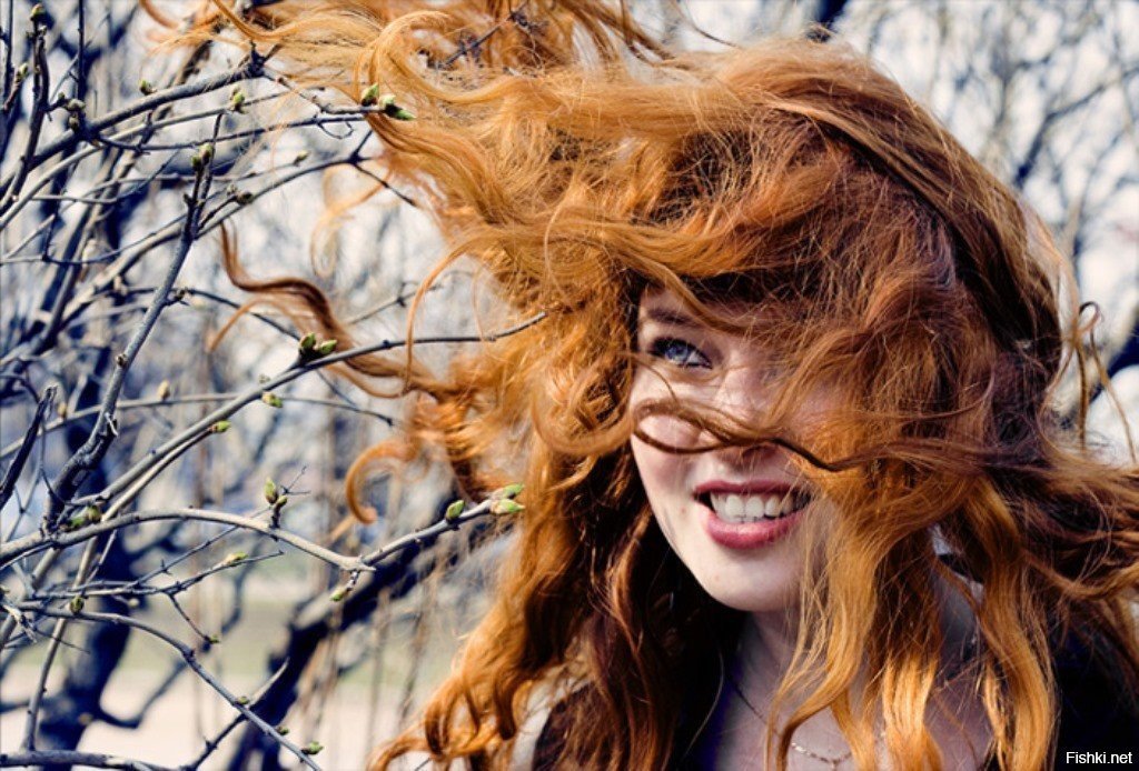 ![Счастливая рыжая девушка]()