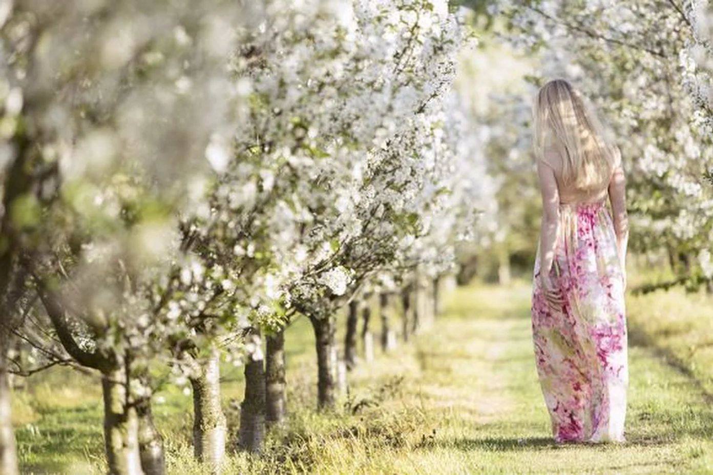 ![Женщина в цветущем саду]()