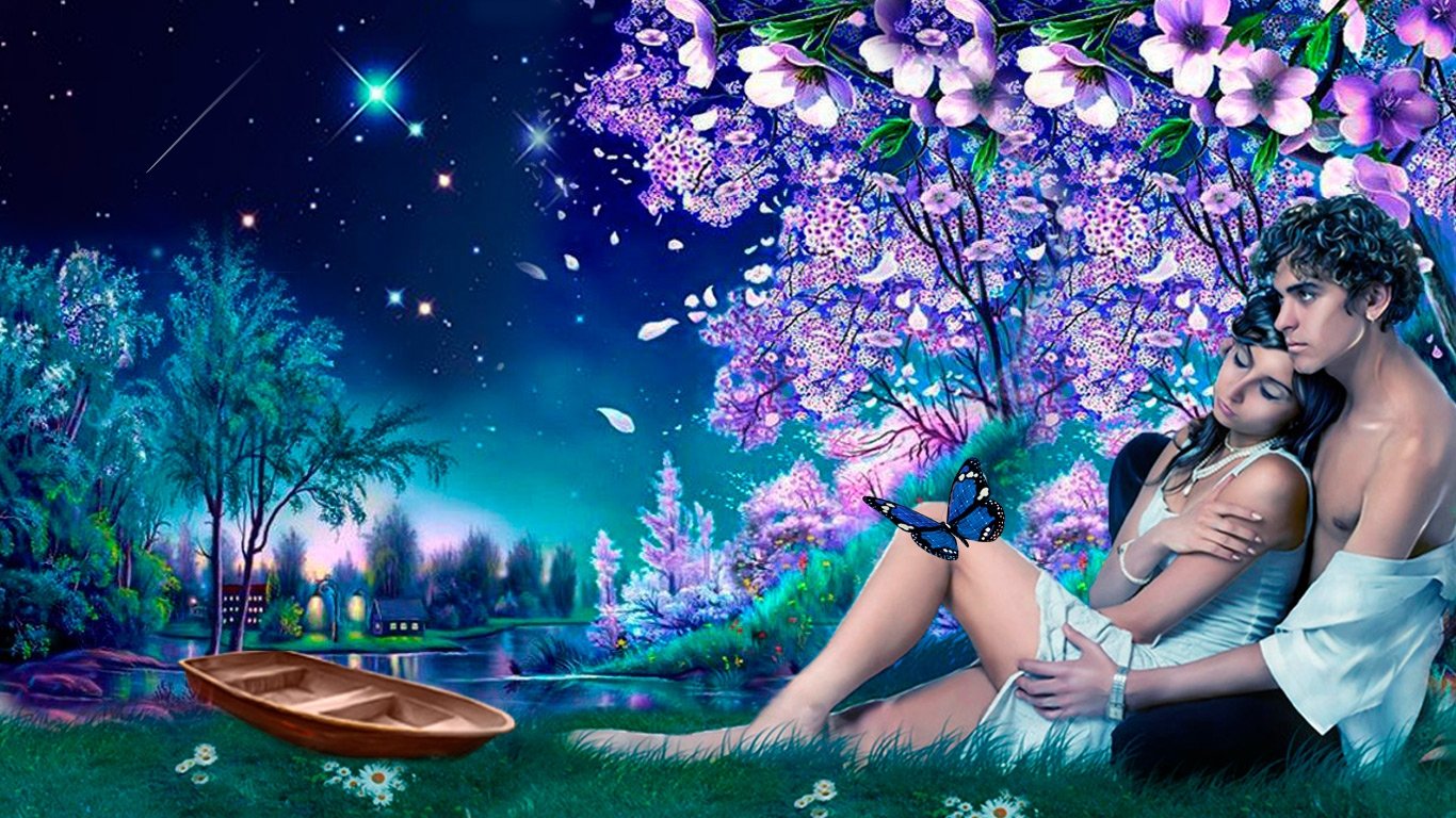 ![Влюбленные под деревом]()