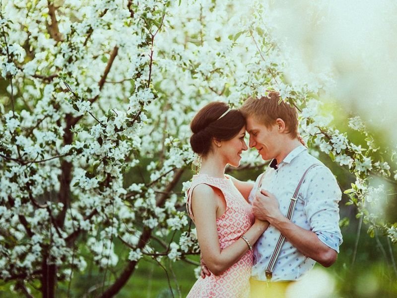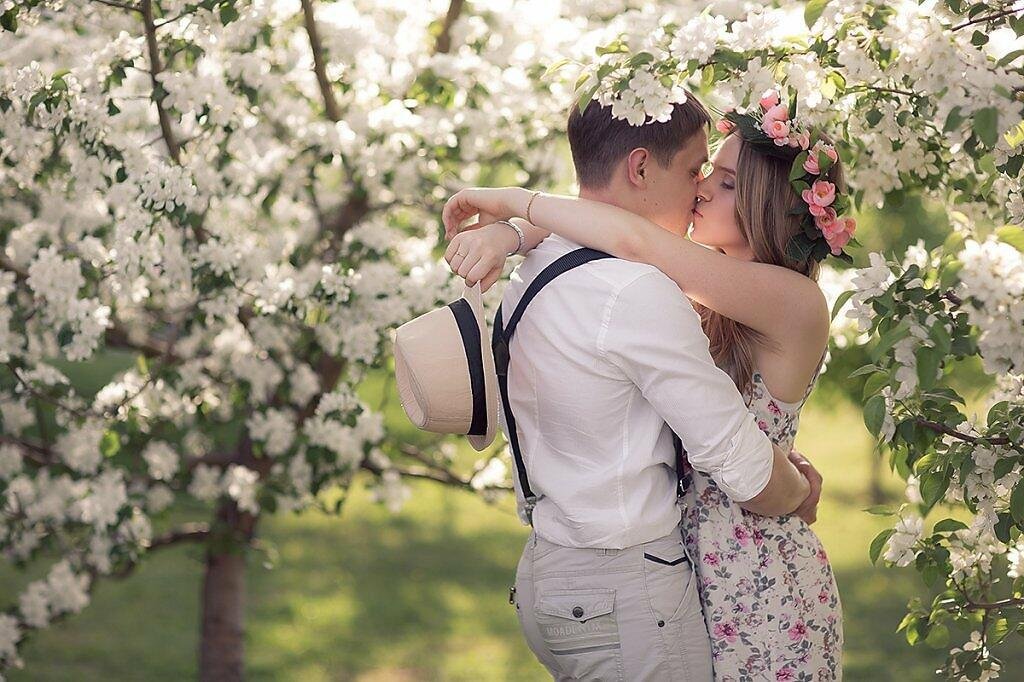 Пара в цветущем саду