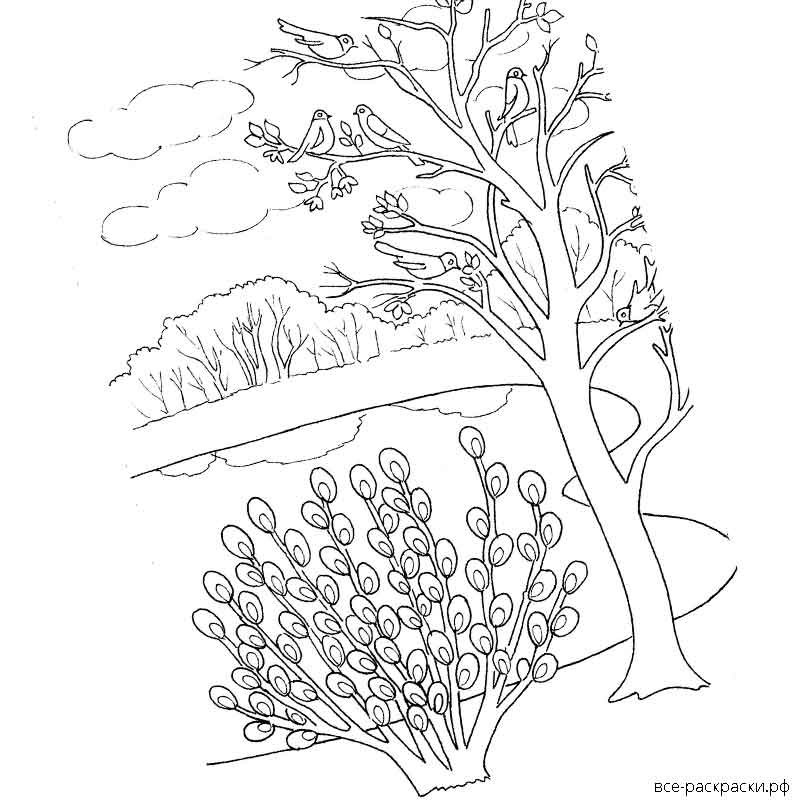 Весенний пейзаж раскраска