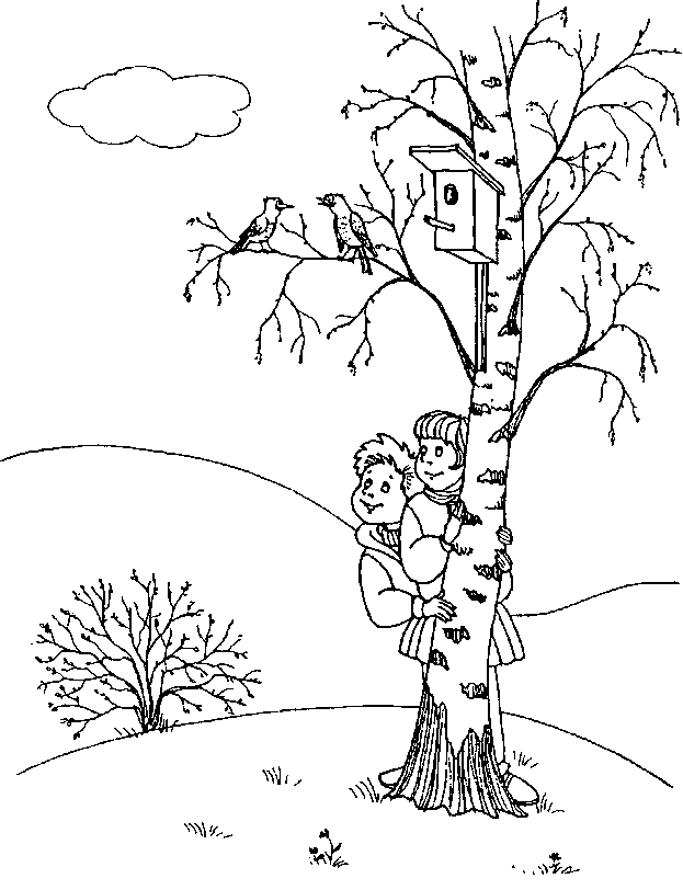 Весенний пейзаж раскраска для детей