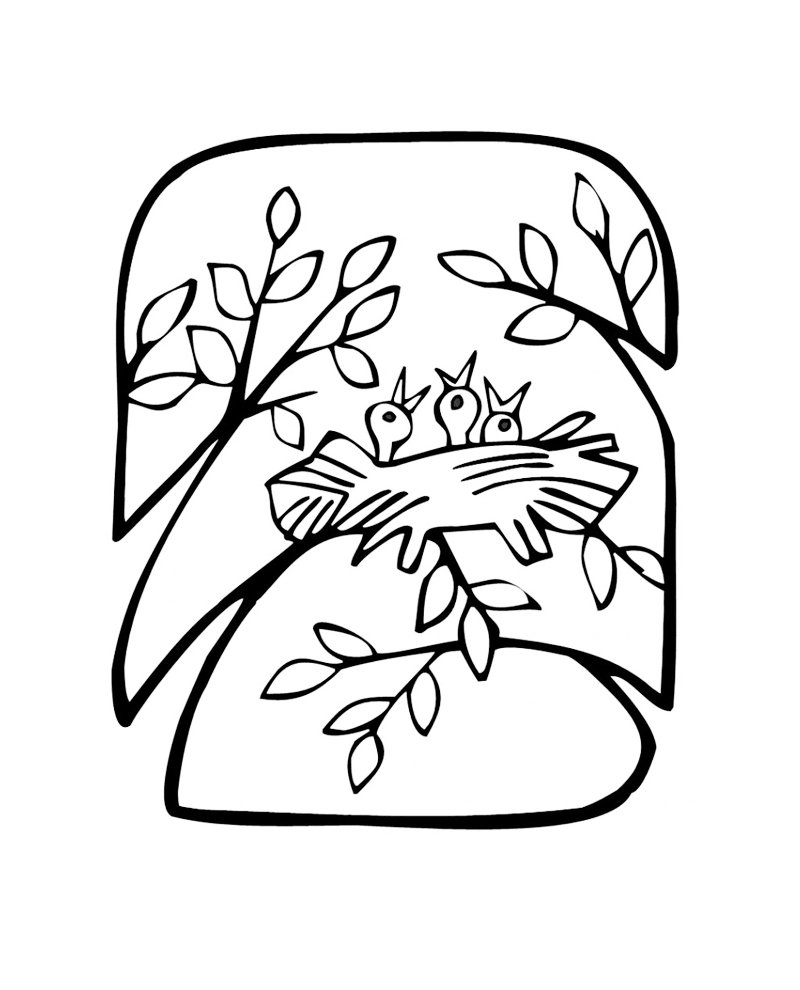Птица на дереве раскраска