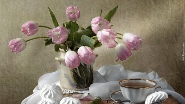![Пожелания доброго утра с тюльпанами]()