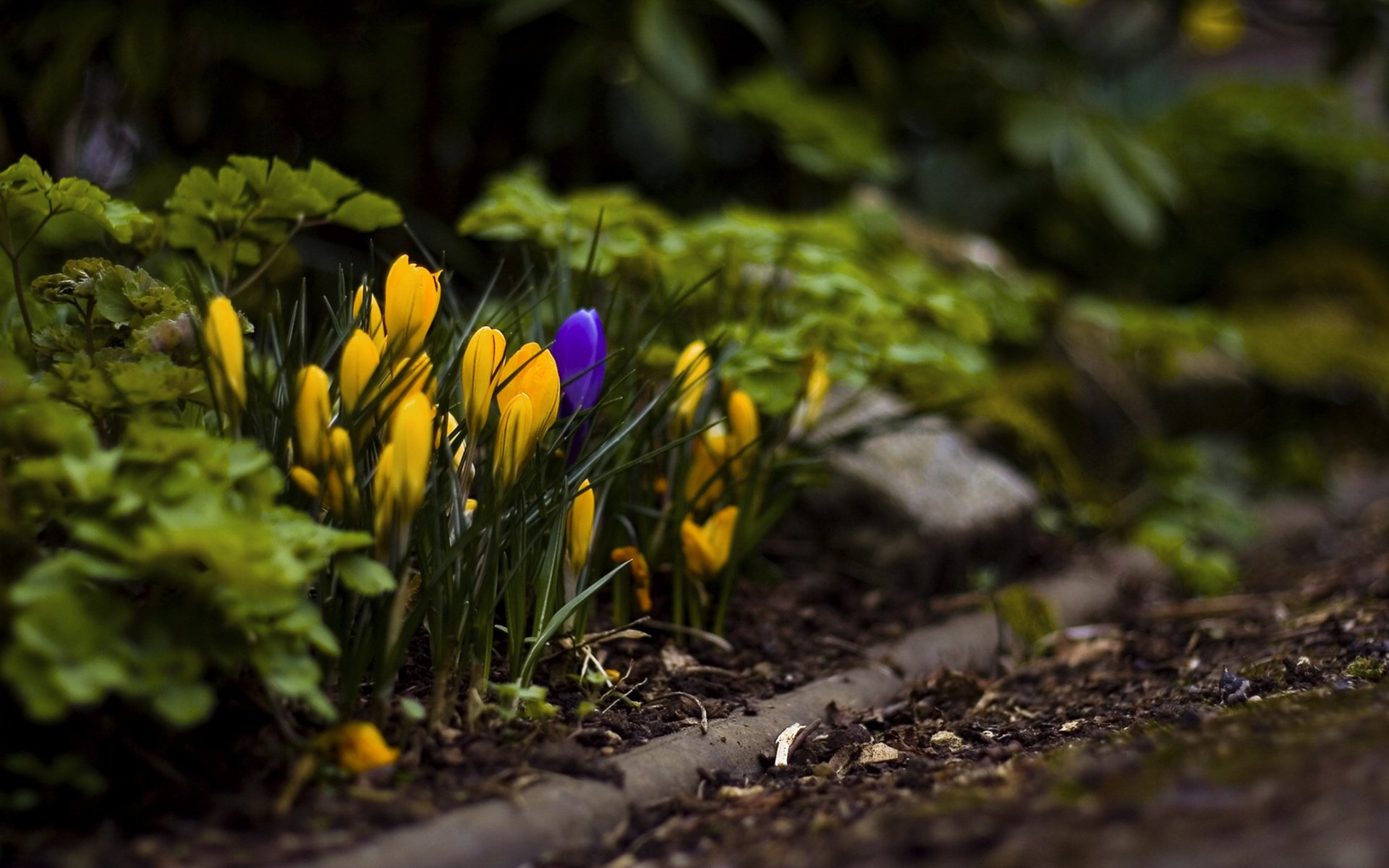 ![Желтые первоцветы крокусы]()