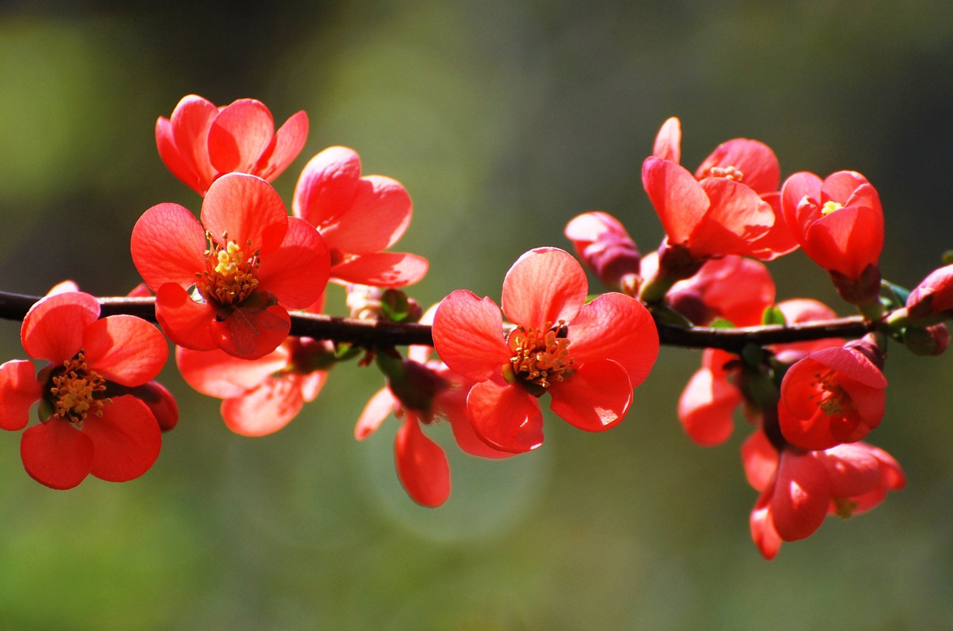 Красные цветы на ветке