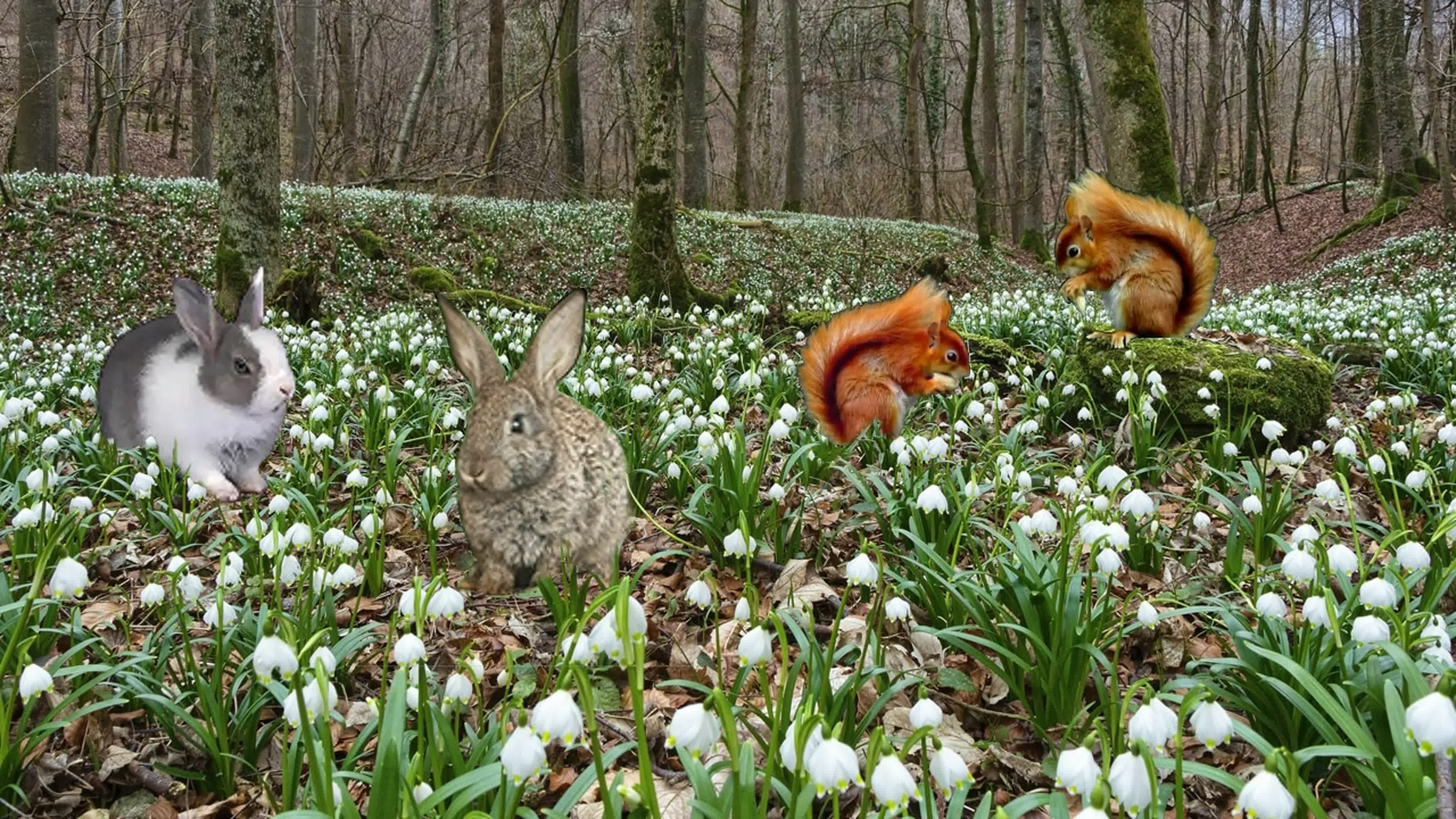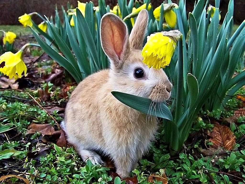 ![Кролик с подснежниками]()