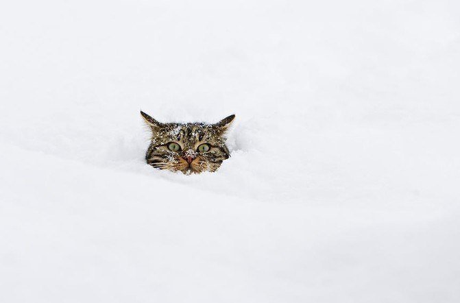 ![Кот в сугробе]()