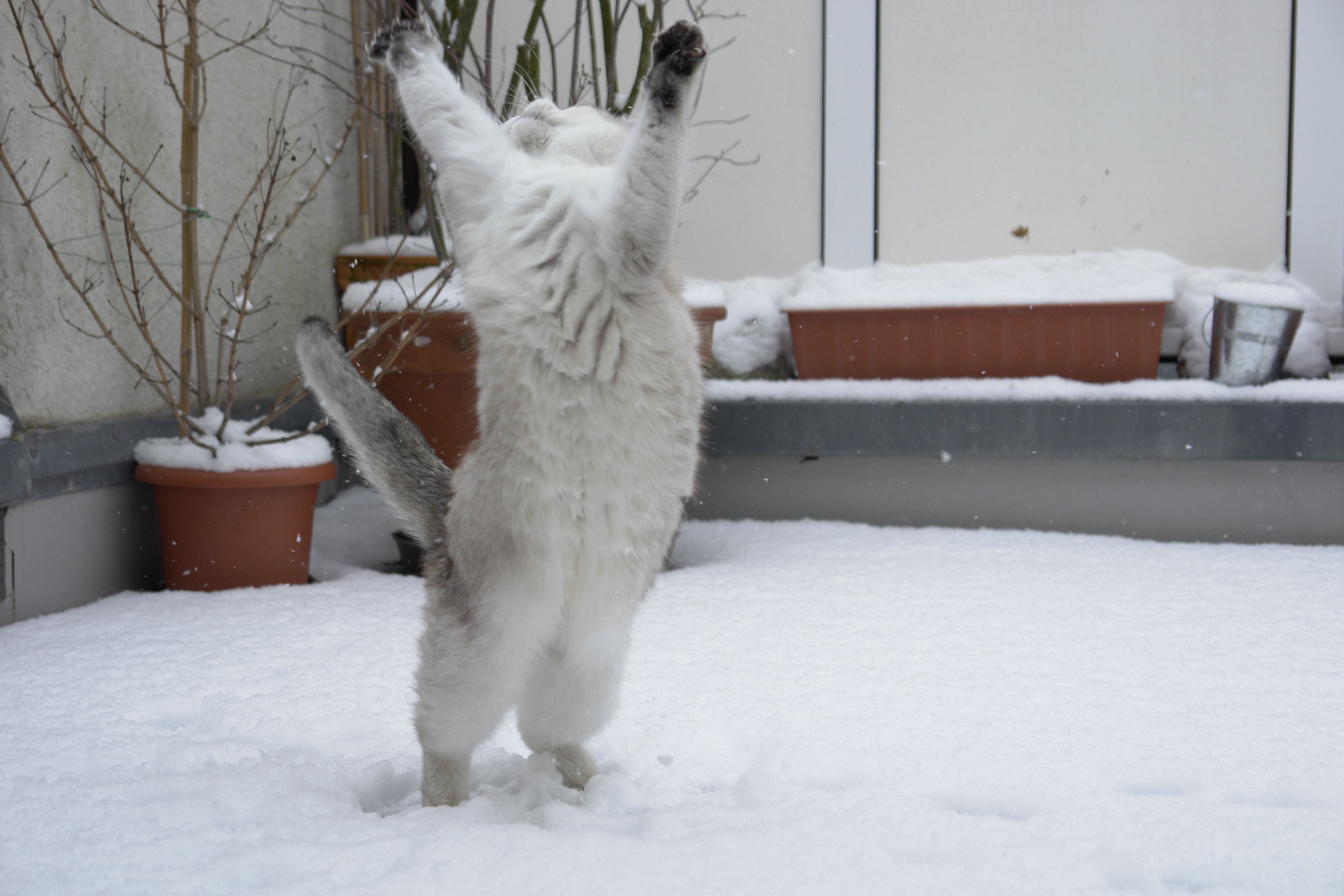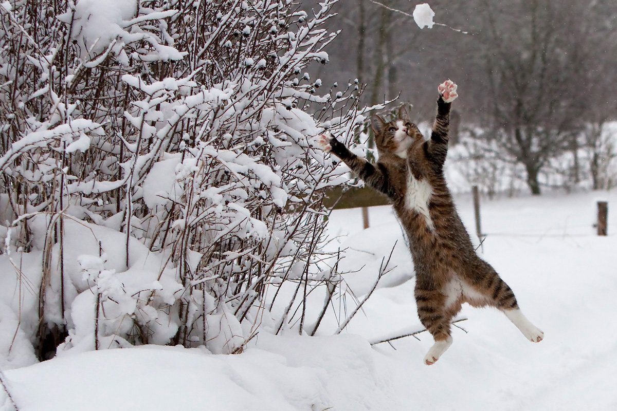 ![Кот радуется снегу]()