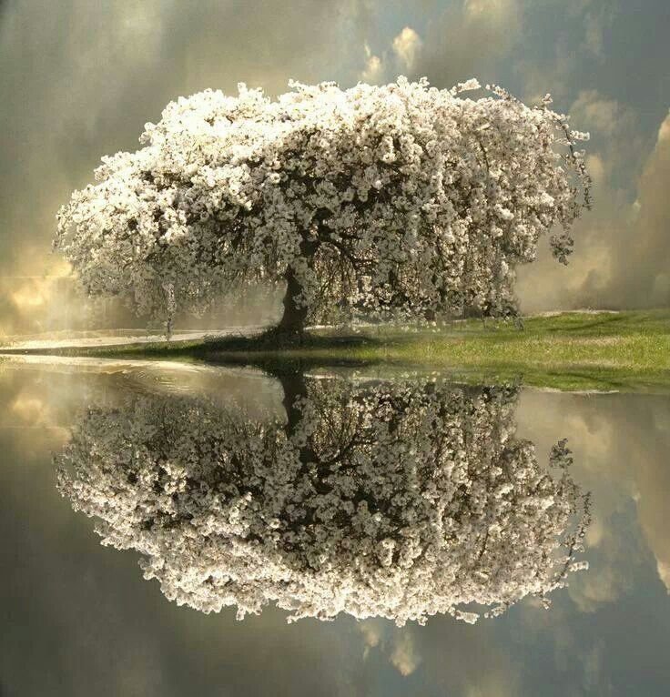 Цветущее дерево у воды