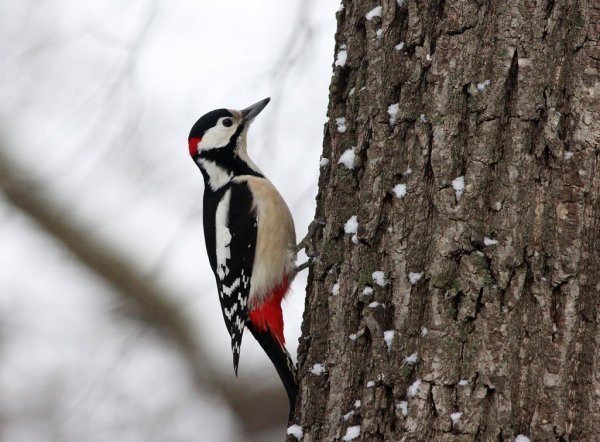 Большой пёстрый дятел зимой