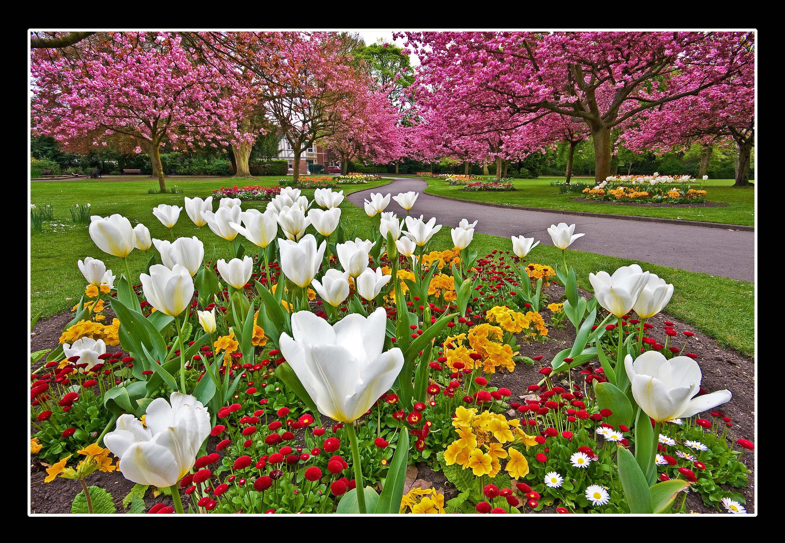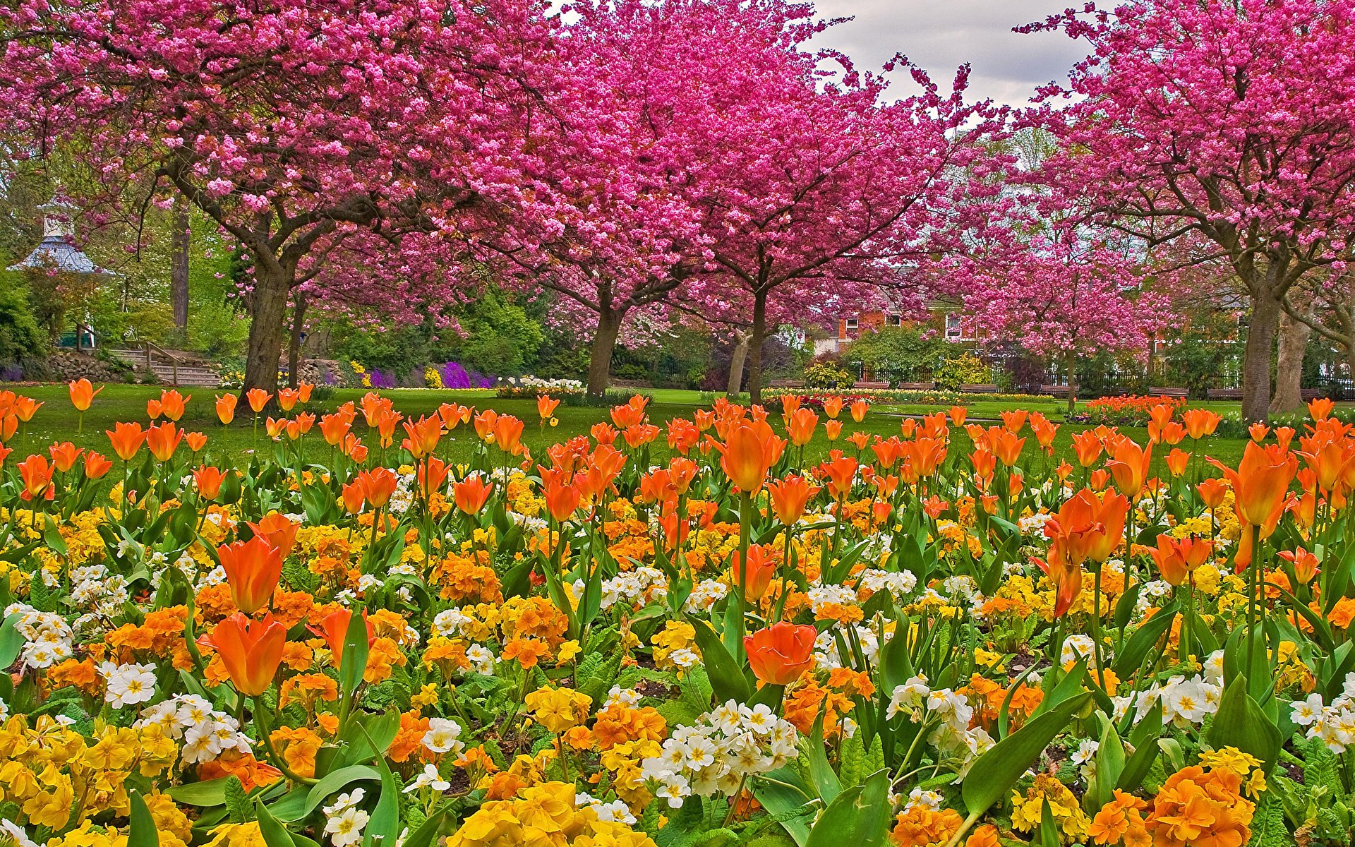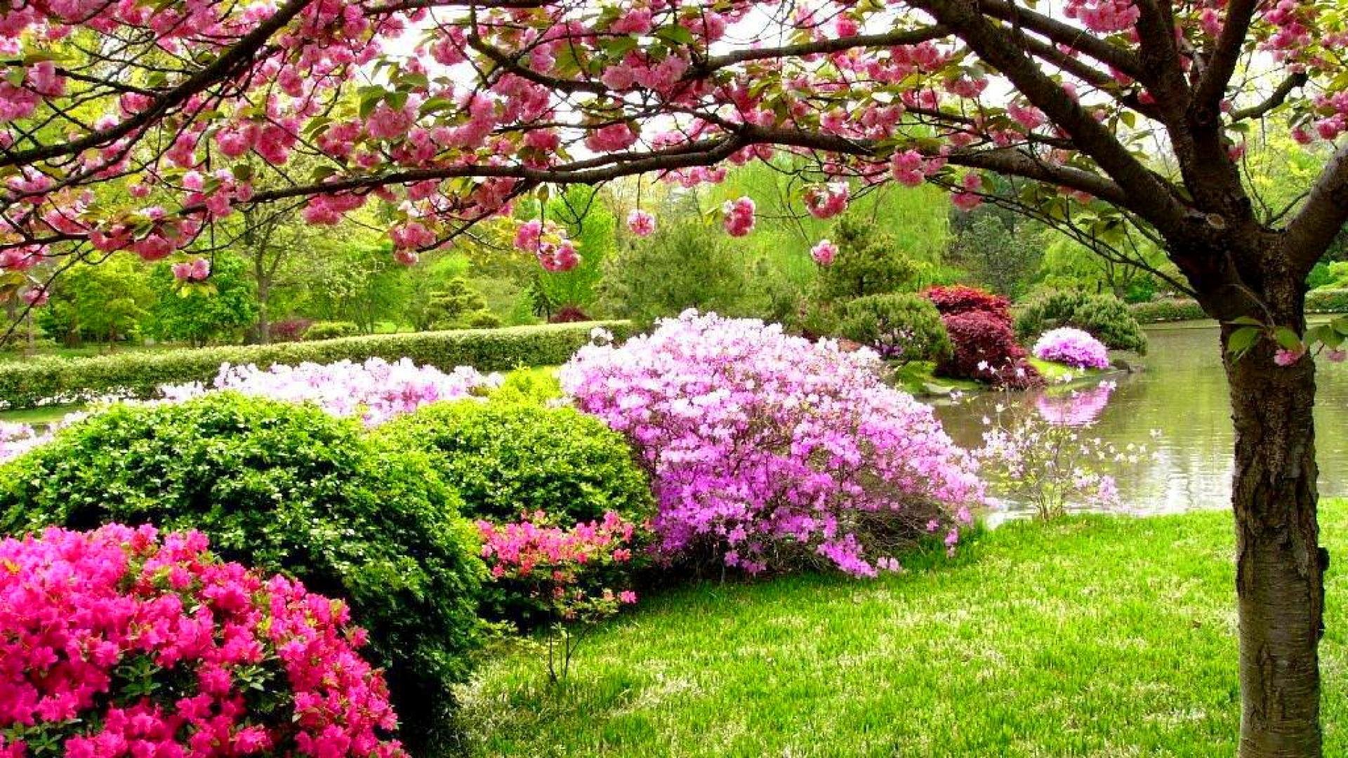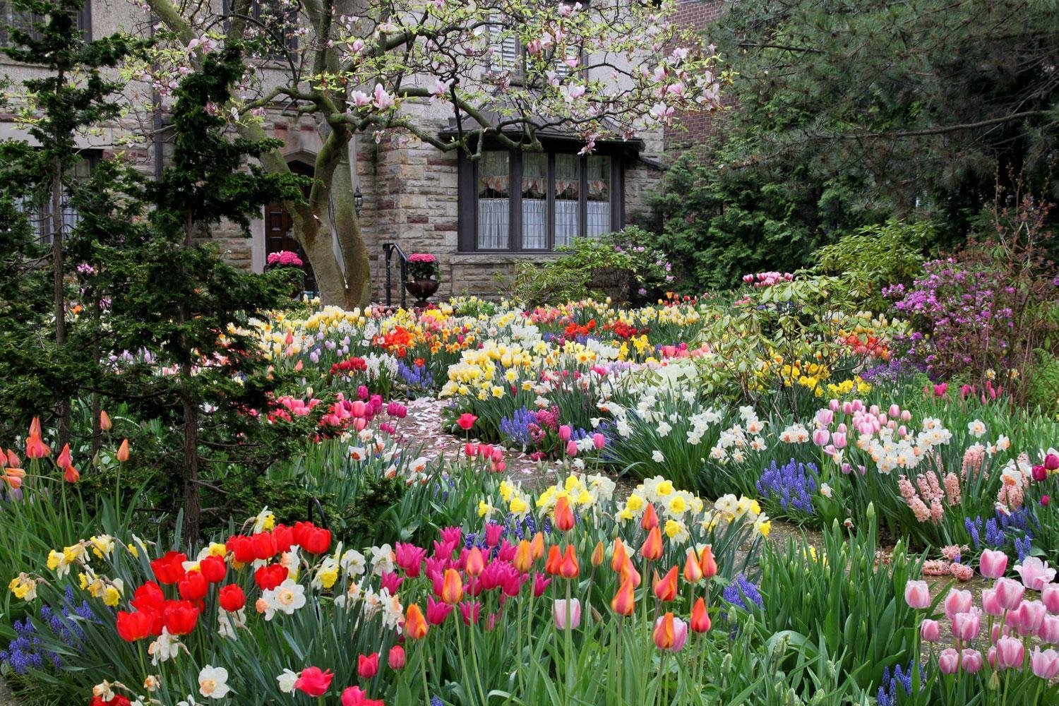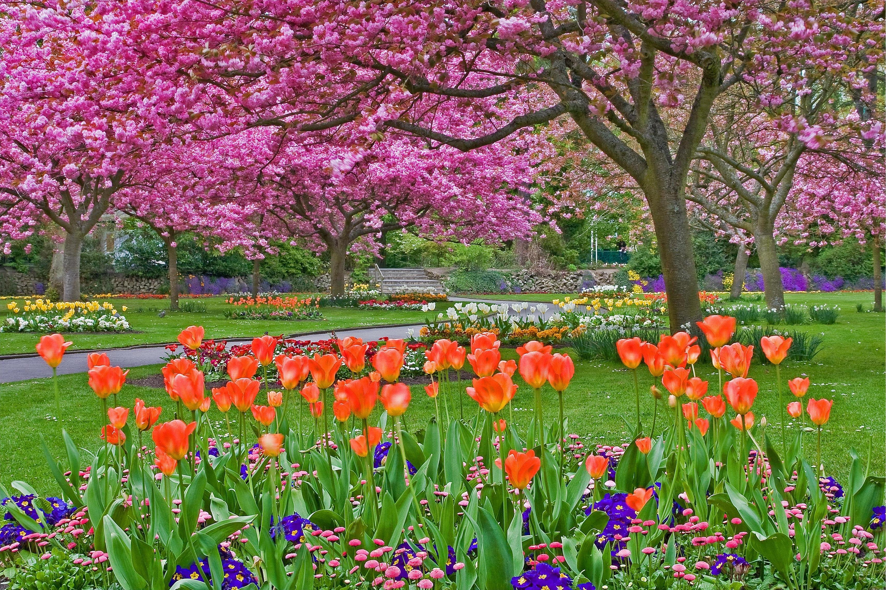 Сад с цветами весной