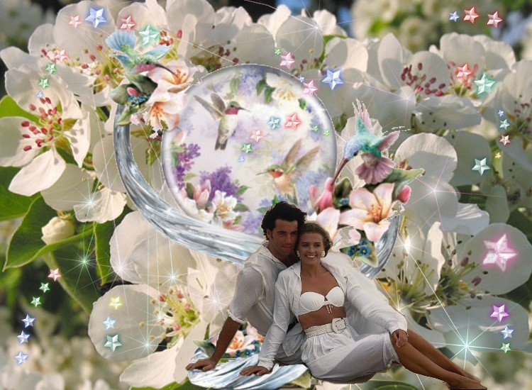 Влюбленные в цветущем саду