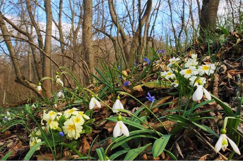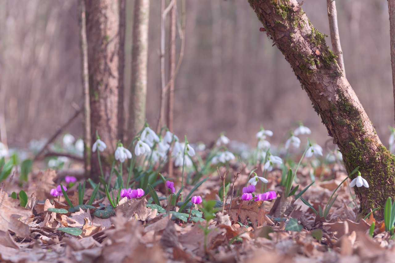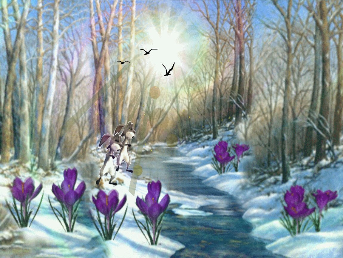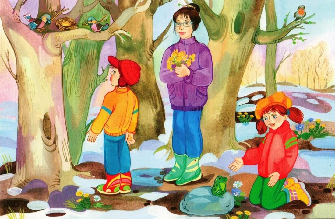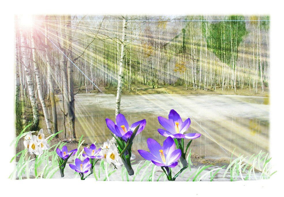 На картинке изображен лес весной, когда природа просыпается от зимнего сна и наполняется свежестью и яркими красками. На заднем плане виднеются высокие деревья, покрытые светло-зелеными листьями, а на переднем плане расцветают первоцветы и трава. Солнечные лучи проникают сквозь листву, создавая игру света и тени на земле. Все вокруг напоминает о возрождении природы после зимы и приносит чувство тепла и уюта.