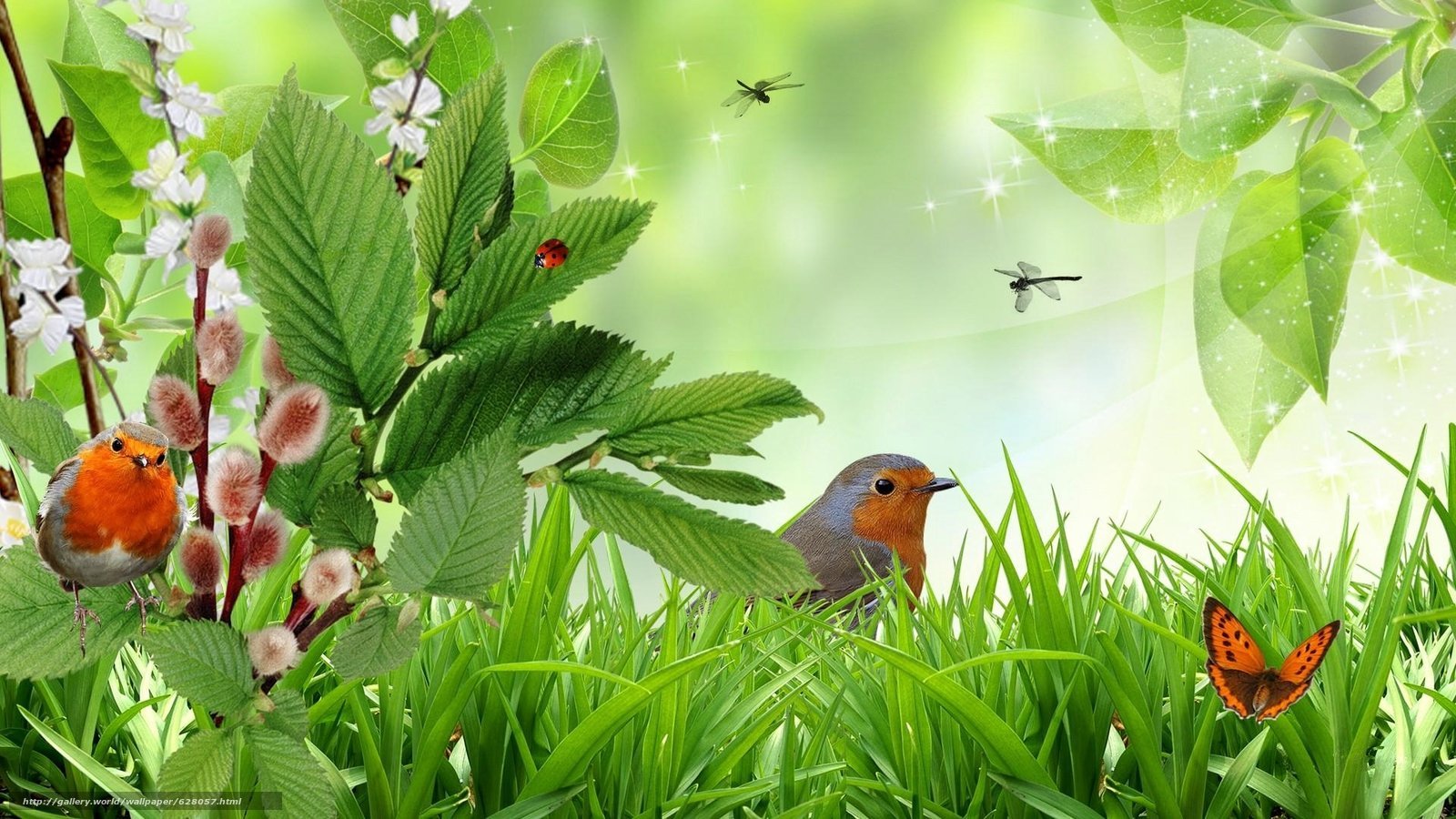 Весенний фон с птичками