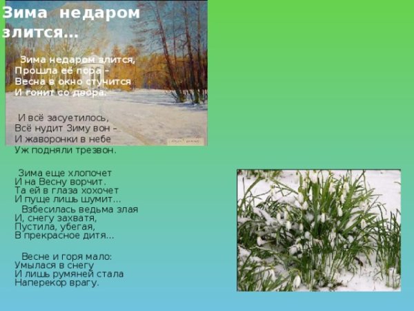 Про весну Тютчев зима недаром злится