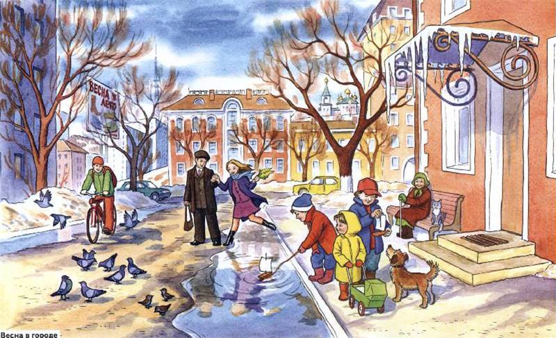 ![Весна в городе для детей]()