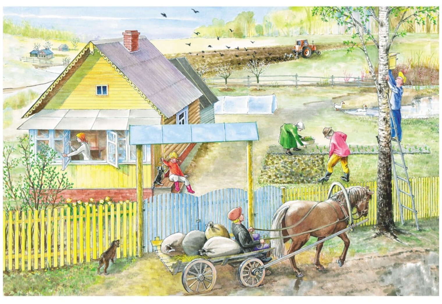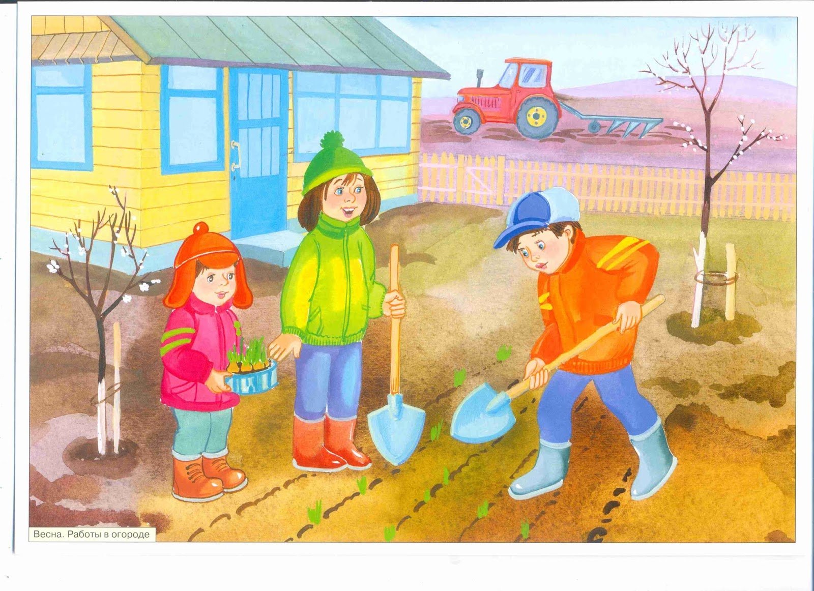 ![Весенние работы в саду картина для детей]()