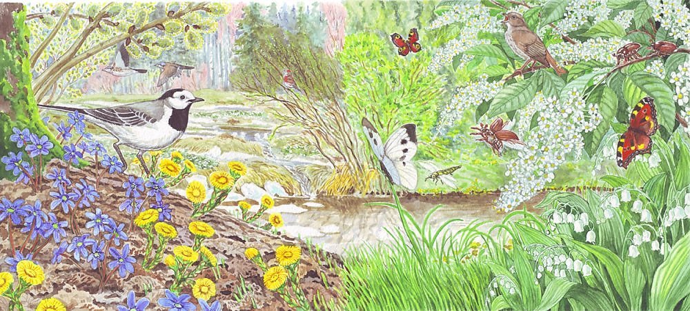 ![Иллюстрации с изображением весны]()