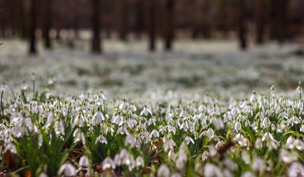 ![Поляна подснежников в лесу]()