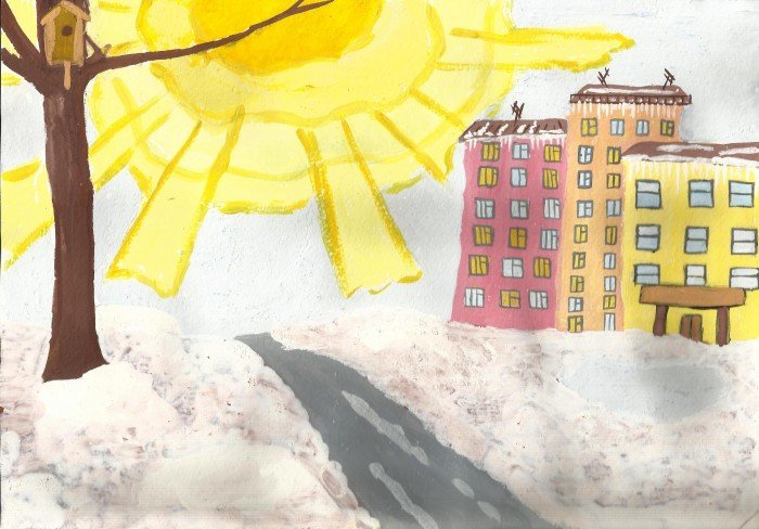 ![Весна в городе рисунок]()