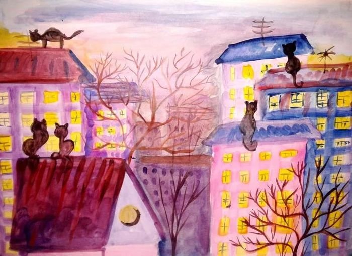 ![Город весной рисунки]()