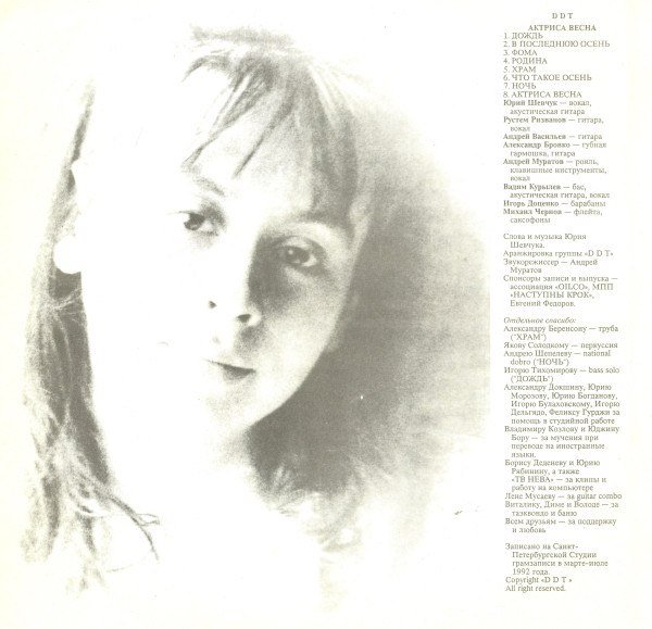 ДДТ актриса Весна 1992 альбом