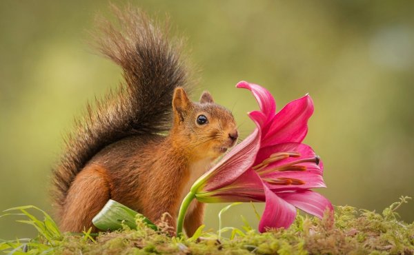 ![Белочка с цветами]()