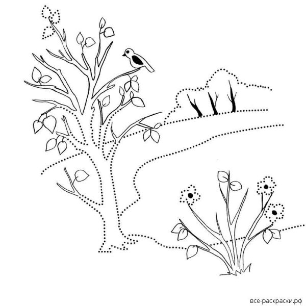 ![Весенний пейзаж раскраска]()
