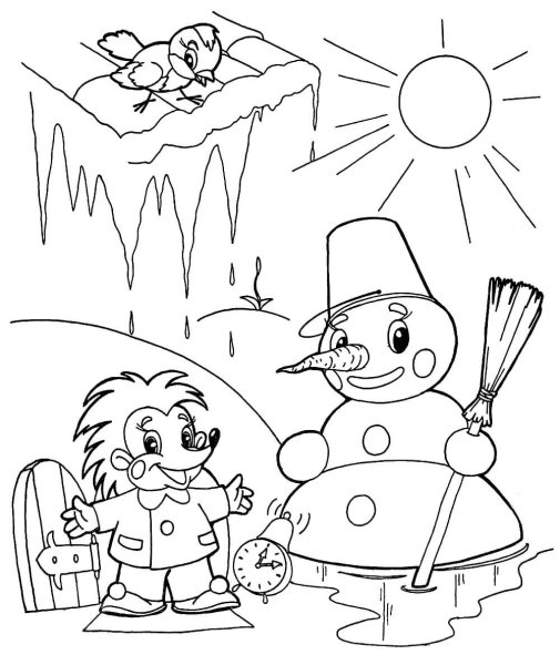 Зима убегает от весны раскраска