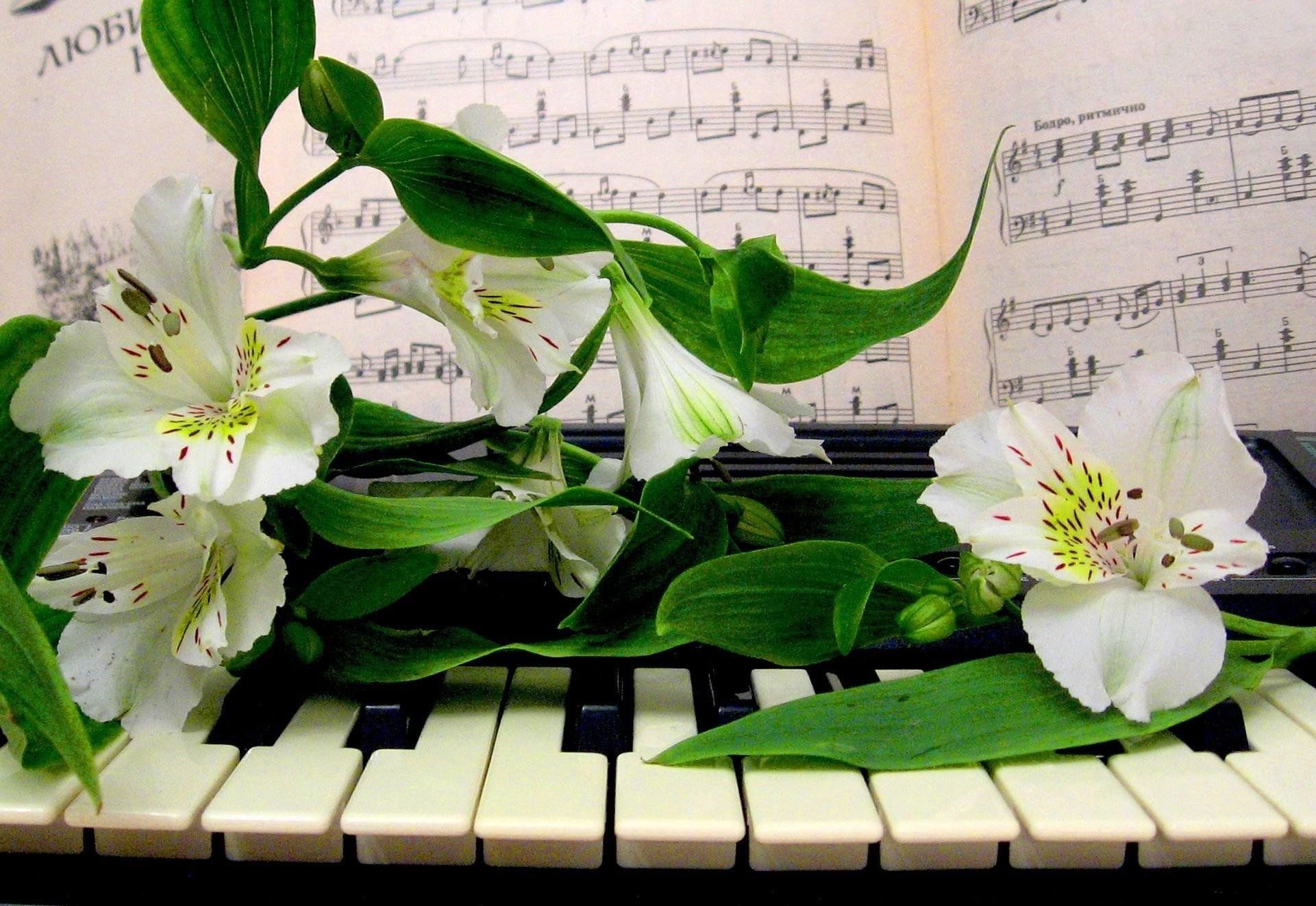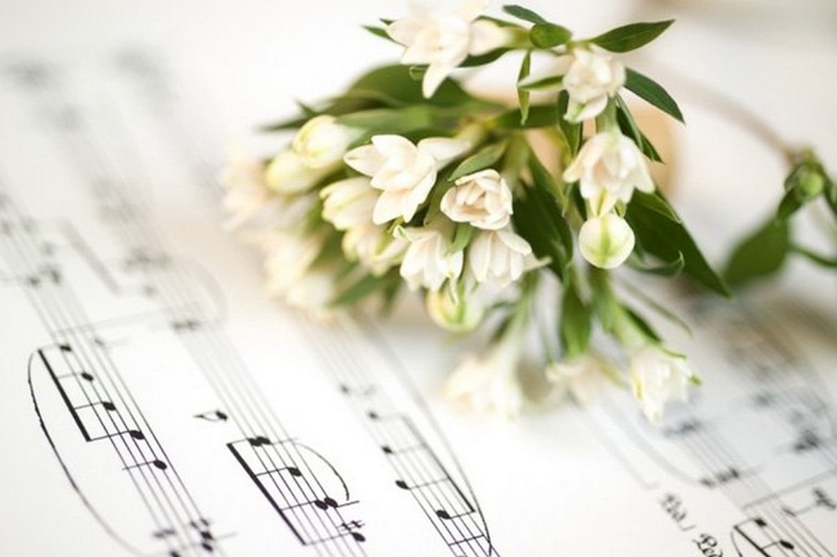 Открытки с нотами и цветами
