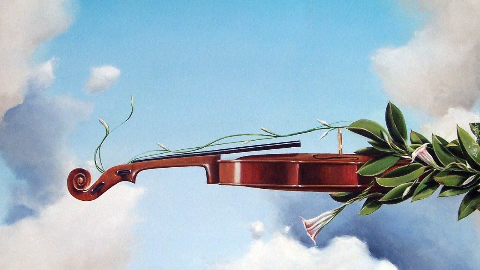 ![Скрипка на фоне цветов]()