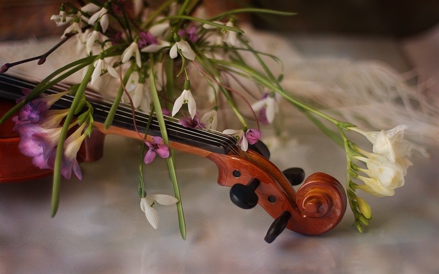 Скрипка и весенние цветы