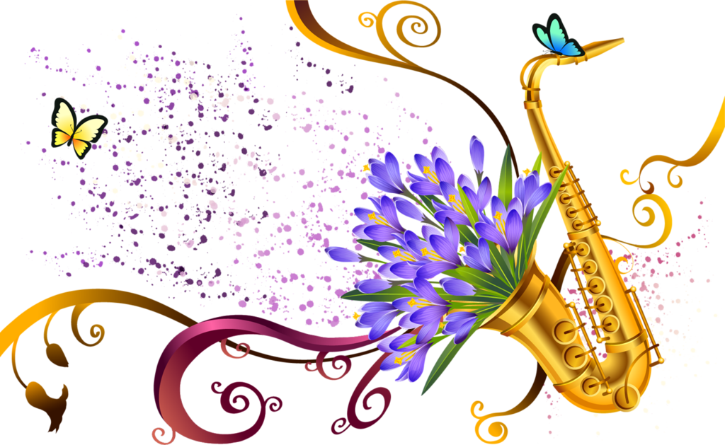 ![Музыкальные инструменты и цветы]()