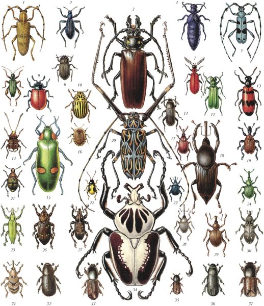 ![Жесткокрылые жуки представители]()