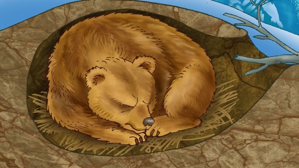 Мэдвэд в бэрлогэ взимнюю спиачкэ