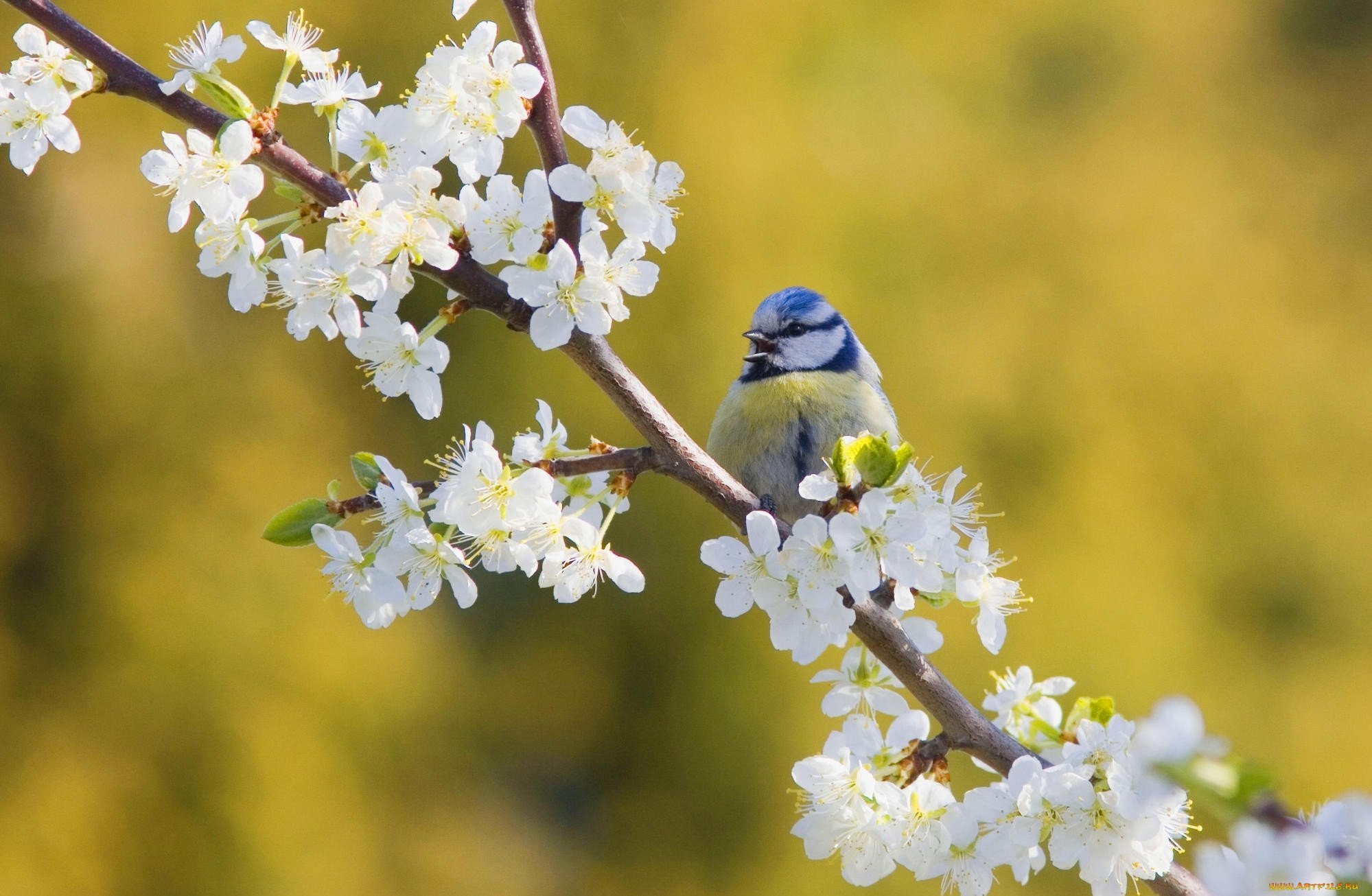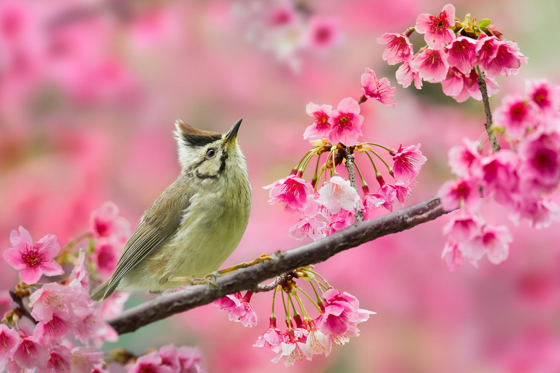 Птица на цветущей ветке