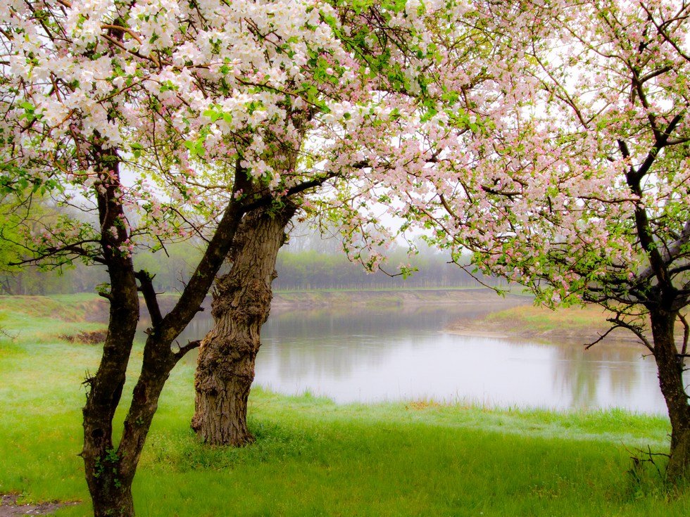 Цветущее дерево у реки