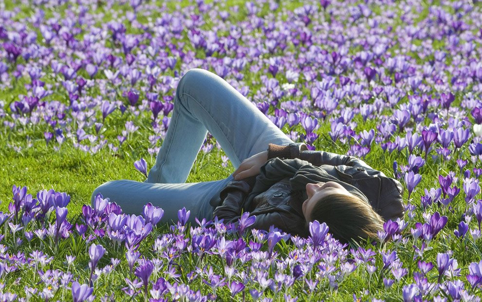 Девушка весной со спины