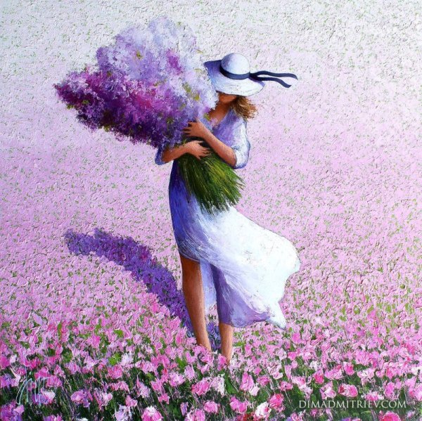 Женщина с букетом сирени