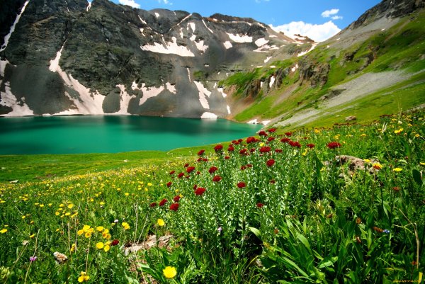 Горное озеро с цветами