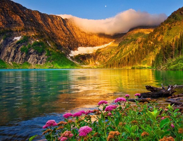Горы озеро цветы