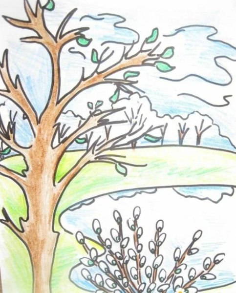 Рисование весеннего пейзажа