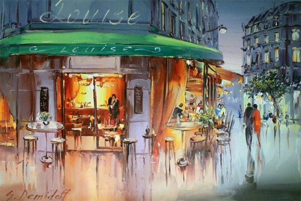 Париж , улочки , кафе , картина маслом