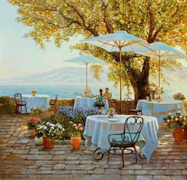 Уличное кафе живопись