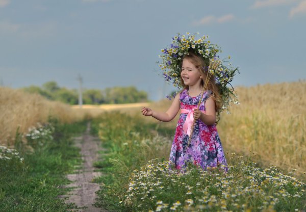 ![Девочка с полевыми цветами]()