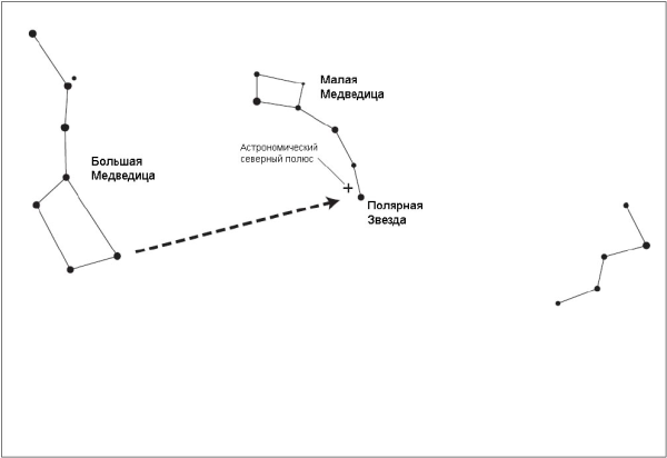 ![Созвездие большой и малой медведицы и Полярная звезда]()